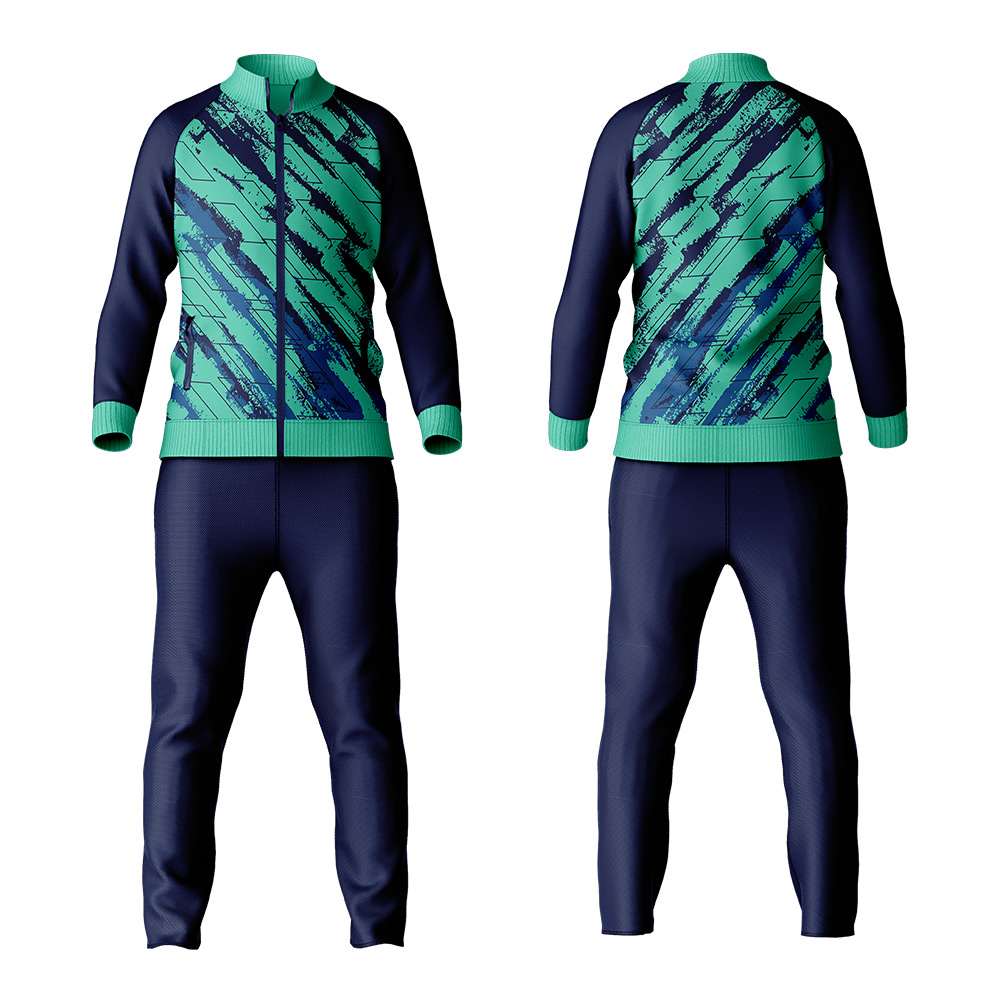 A tracksuit is a two-piece athletic outfit with matching trousers and a zip-up jacket or pullover, designed for warmth and comfort during or after exercise, made from flexible, breathable fabrics like polyester or cotton, evolving from sportswear to popular casual athleisure wear. Key features include loose fit, elastic cuffs/waist, and suitability for sports or relaxed daily wear.