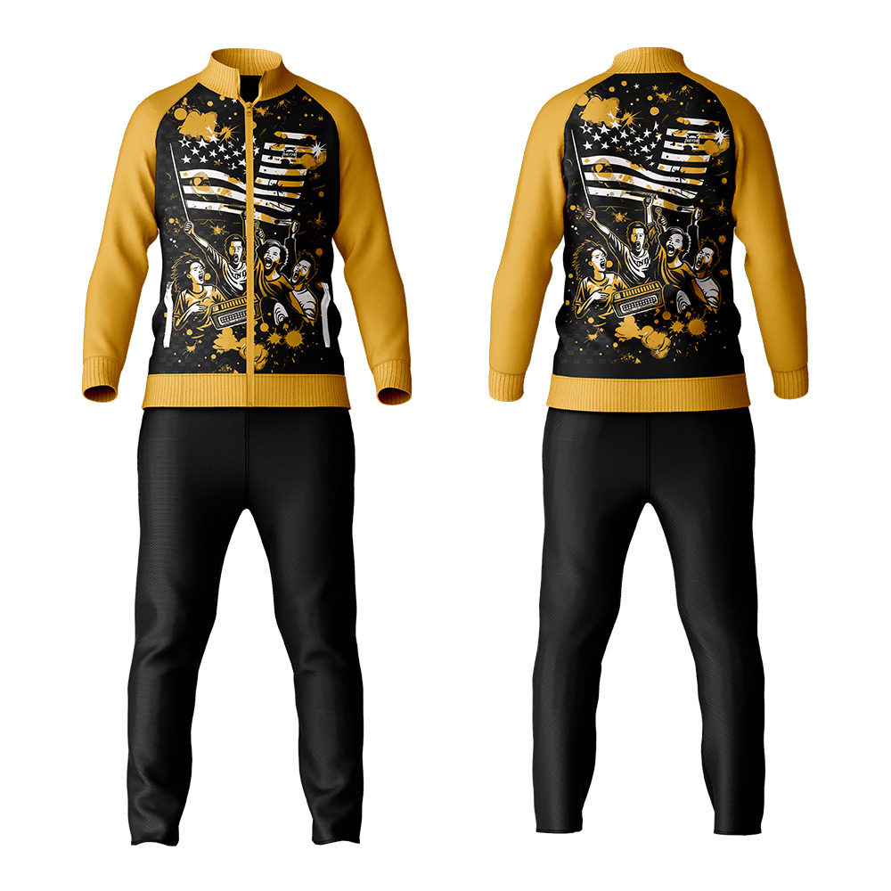 A tracksuit is a two-piece athletic outfit with matching trousers and a zip-up jacket or pullover, designed for warmth and comfort during or after exercise, made from flexible, breathable fabrics like polyester or cotton, evolving from sportswear to popular casual athleisure wear. Key features include loose fit, elastic cuffs/waist, and suitability for sports or relaxed daily wear.