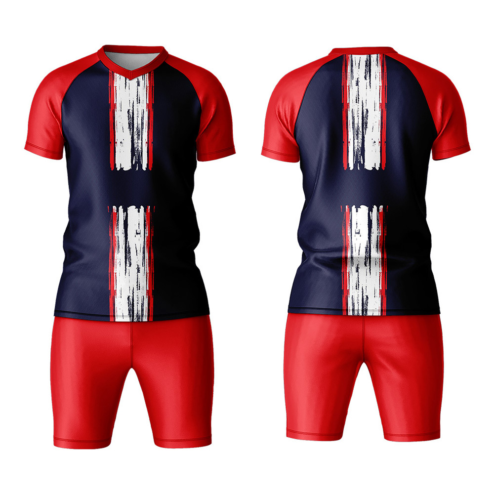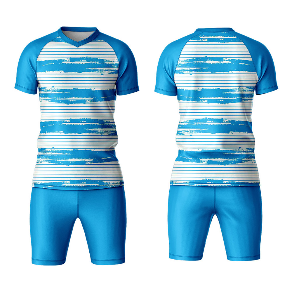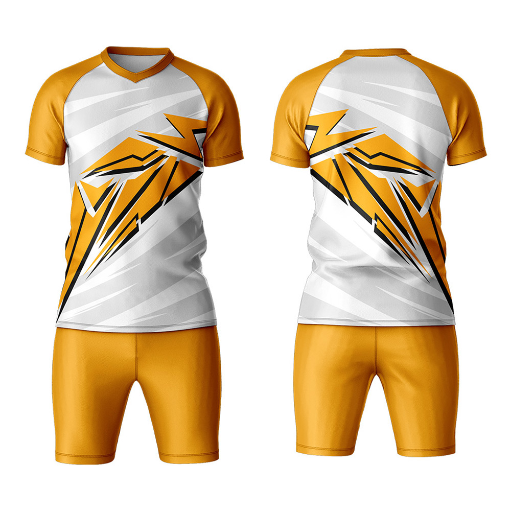 This soccer uniform is designed for speed, comfort, and all-match performance. Made from lightweight, breathable fabric, it enhances airflow and effectively wicks away moisture to keep players cool and dry during intense play. The ergonomic fit allows full freedom of movement, while durable stitching ensures long-lasting use on the field. Featuring a modern athletic design with matching jersey and shorts, this uniform is ideal for training sessions, club matches, and competitive tournaments, delivering both style and performance.